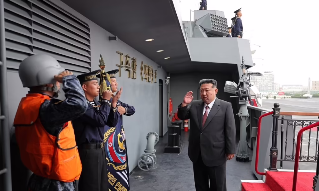 North Korean leader Kim Jong-un inspects a Choe Hyon destroyer at an undisclosed location presumed to be Nampo in early October. | Image: Rodong Sinmun.